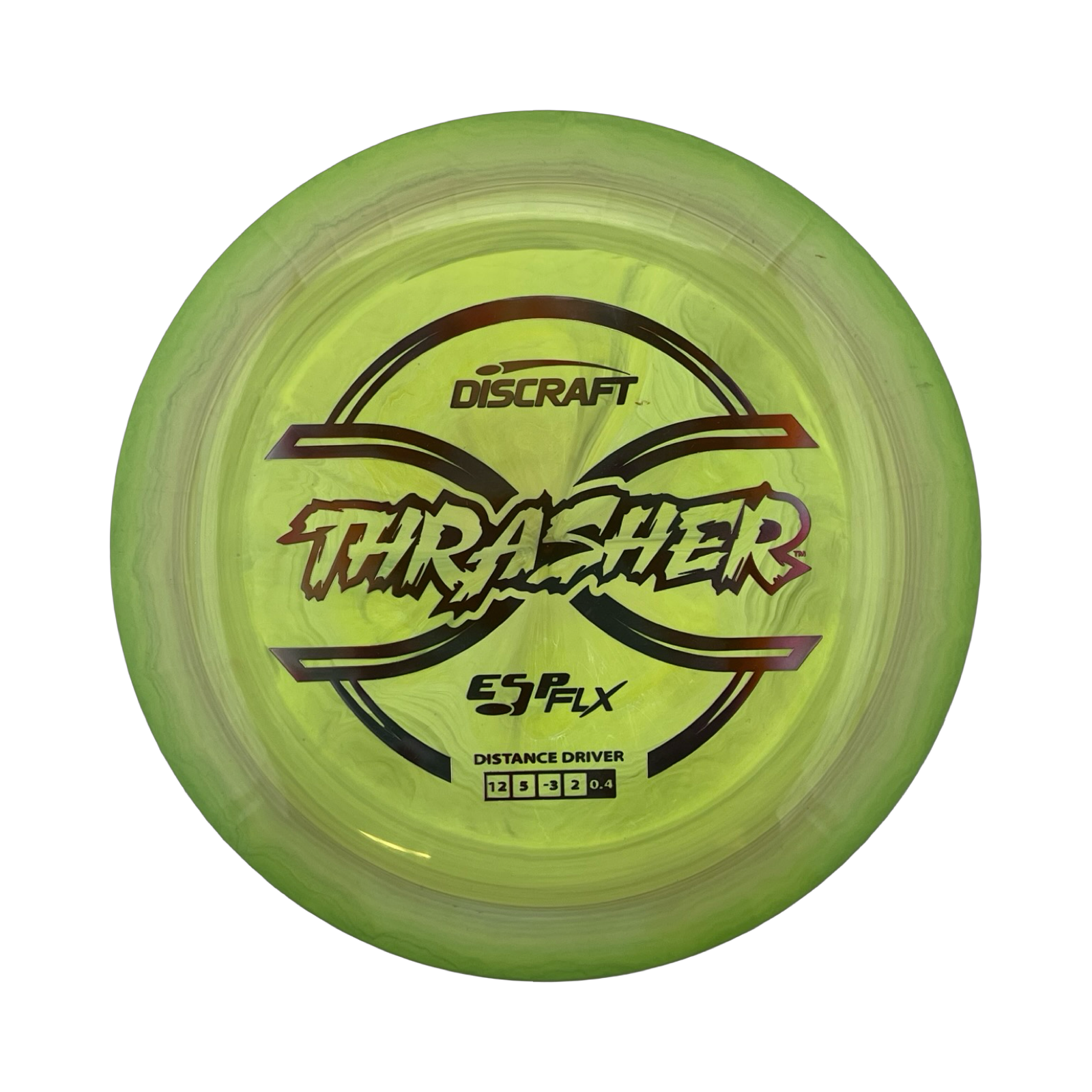 The Thrasher is a distance driver from Discraft that is meant for fast, easy release for slower to average arm speeds. It is a very forgiving disc for new players. Experienced players can rip it for hyzer flips or anhyzer turns without the ugly rollover.
